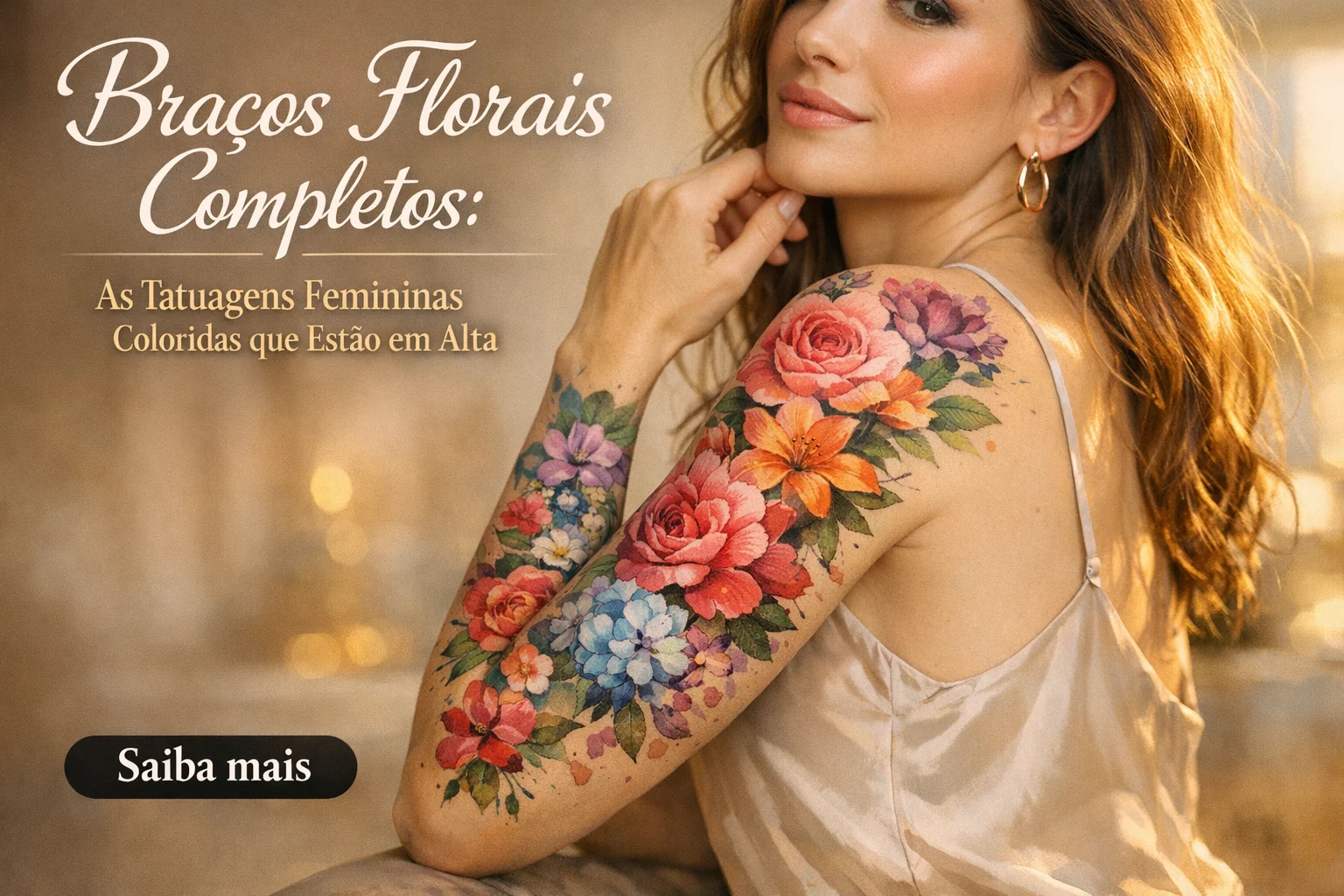 Os braços florais completos coloridos estão entre as tatuagens femininas mais desejadas do momento. Neste artigo, você entende por que esse estilo virou tendência, como escolher uma composição com personalidade e quais cuidados ajudam a manter a beleza da tattoo.