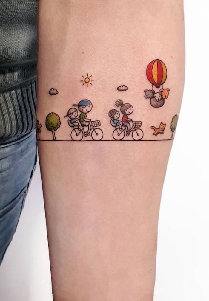Outro design amplamente utilizado é incorporar datas importantes, como o nascimento dos filhos. Essas datas podem ser tatuadas de forma discreta, em numerais romanos ou com elementos decorativos como flores ou corações. A simbologia desses detalhes complementa o significado da tatuagem e a torna ainda mais especial.