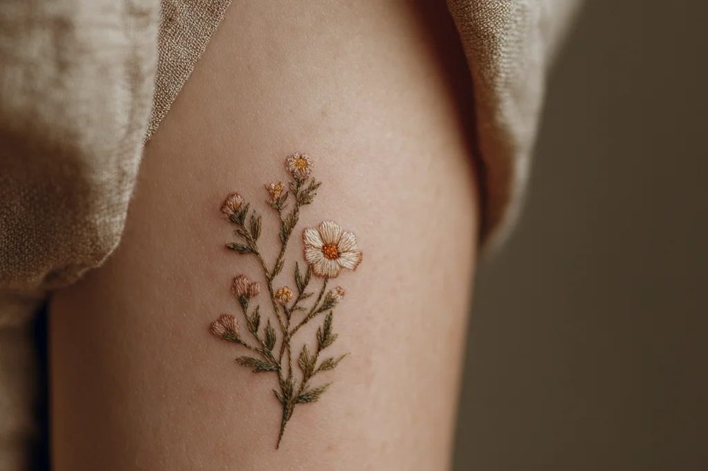As margaridas são flores simples, mas cheias de charme e simbolismo ligado à inocência e pureza. Quando tatuadas em fine-line, elas se tornam uma opção perfeita para quem deseja algo discreto e com significado alegre.